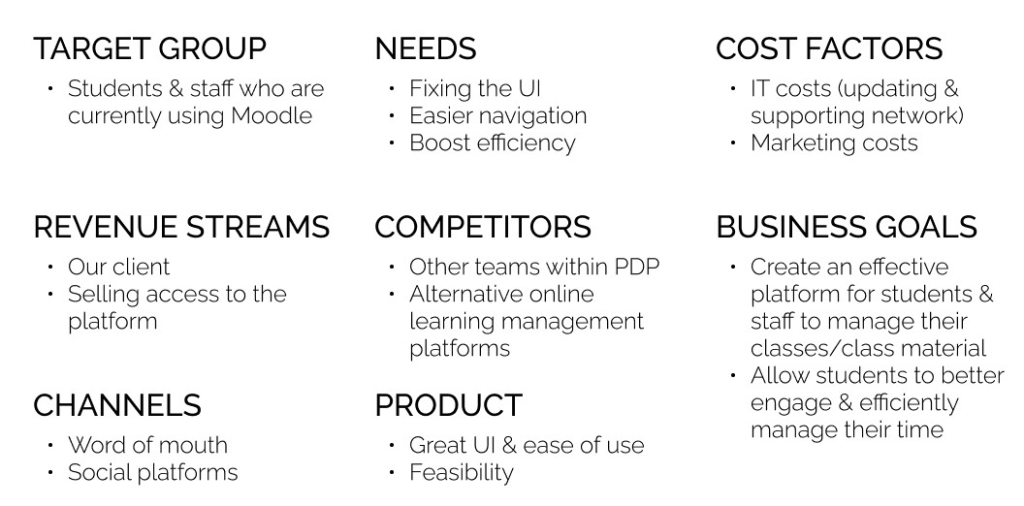 Students were arranged into teams of four, as well as assigned a member of Prodigi to act as a supervisor throughout the program and a mentor who was a working professional in the field. Our team was lucky to have a mentor who was working as a product designer at Canva at the time.