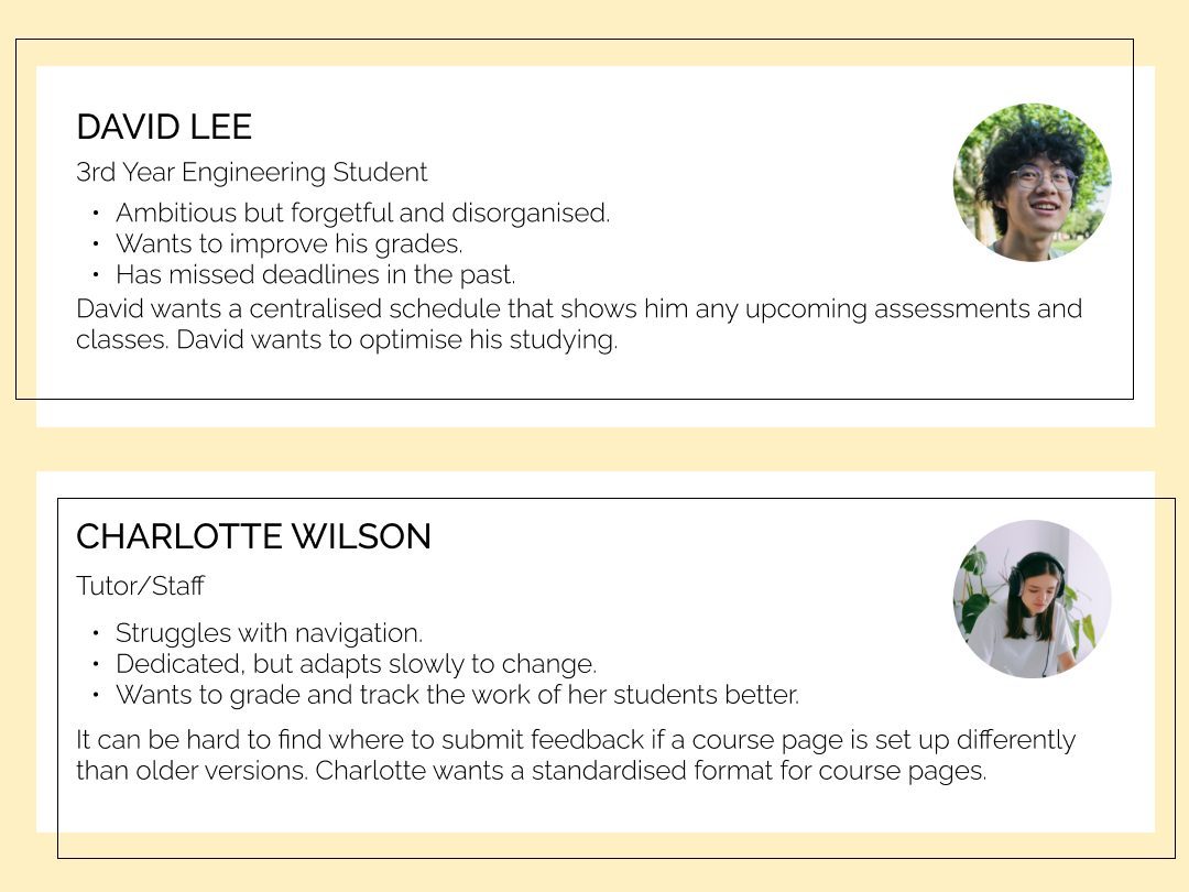 Our team compiled a survey of questions to share with UNSW staff and students. This helped us form an understanding of what the average user may want out of the platform, and of any existing shortcomings we could tackle. The survey received 100+ responses from UNSW students and staff. From these responses, we identified the main issues with the existing platform to be: